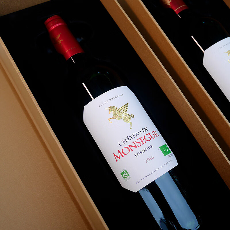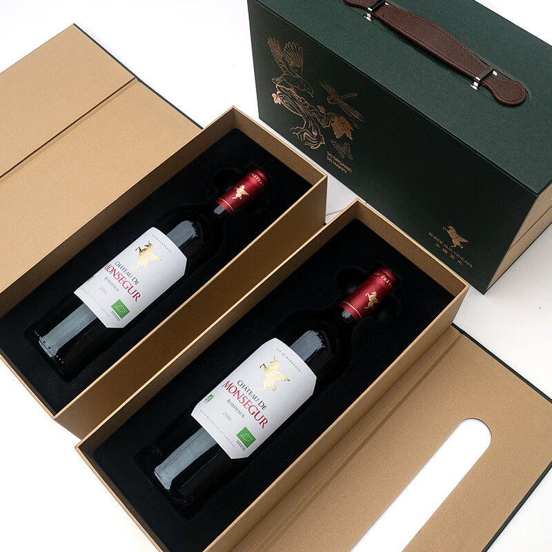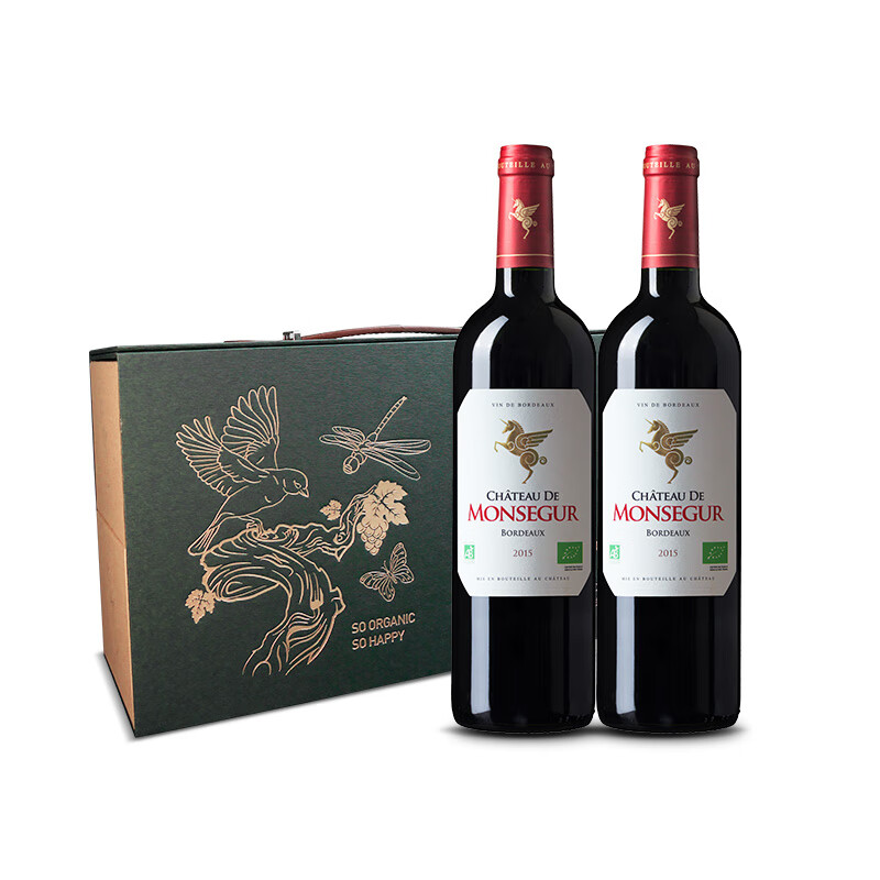 翡马(BORDEAUXVINEAM)法国进口 蒙赛酒庄有机干红葡萄酒 750ml*2瓶 双支礼盒装价格:536.00元!