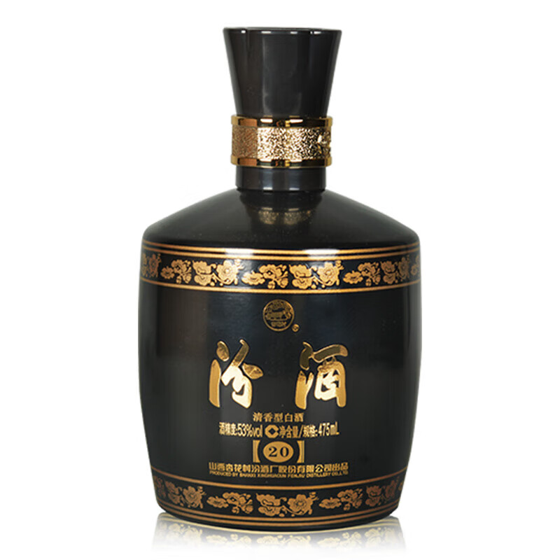 汾酒 黑坛金奖20 清香型白酒 53度 475ml 礼盒装 商务送礼价格:399.00元!