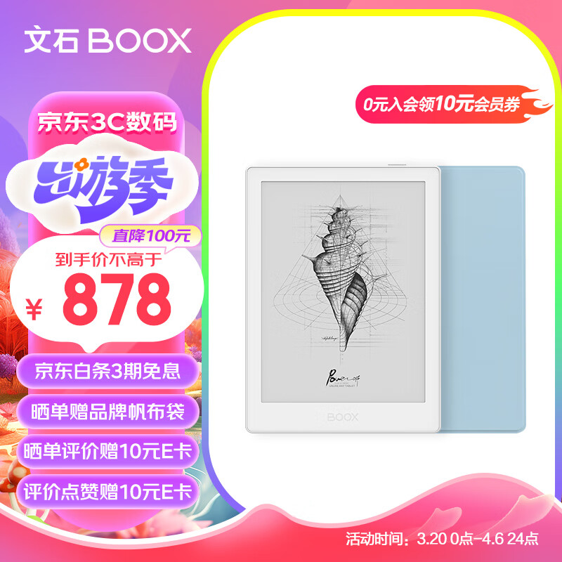 BOOX文石 Poke5S白色 6英寸电子书阅读器 墨水屏平板电子书电纸书电子纸 智能阅读便携 蓝色保护套装价格:878.00元!