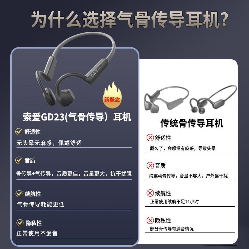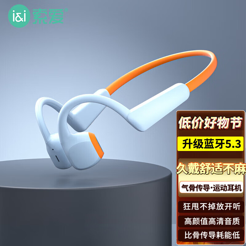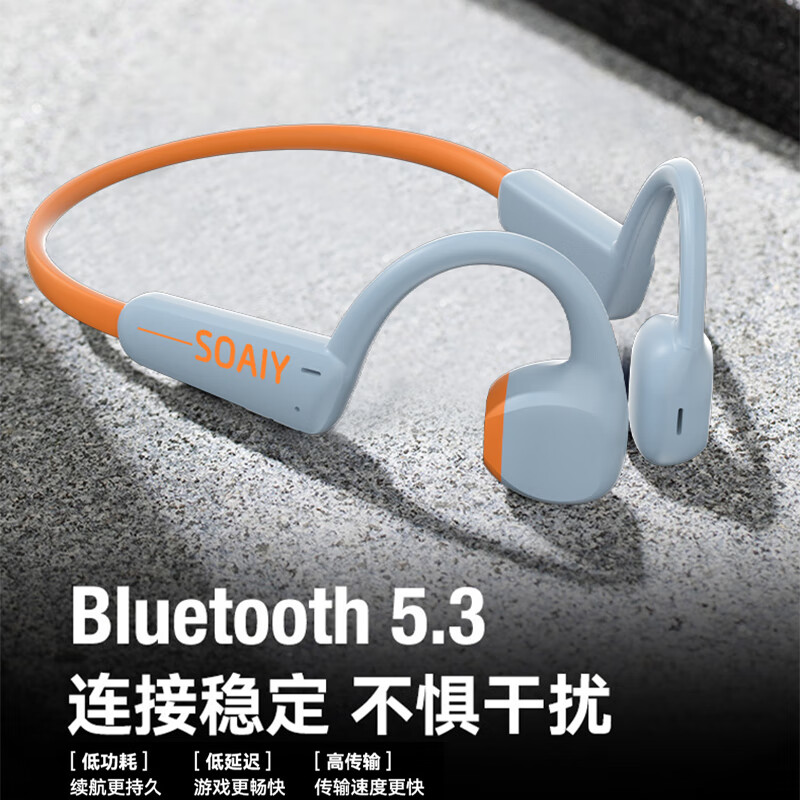 索爱(soaiy)骨传导蓝牙耳机无线运动跑步挂脖式骨感传导不入耳挂耳式防水降噪商务高续航高音质 GD23橙灰色价格:129.00元!