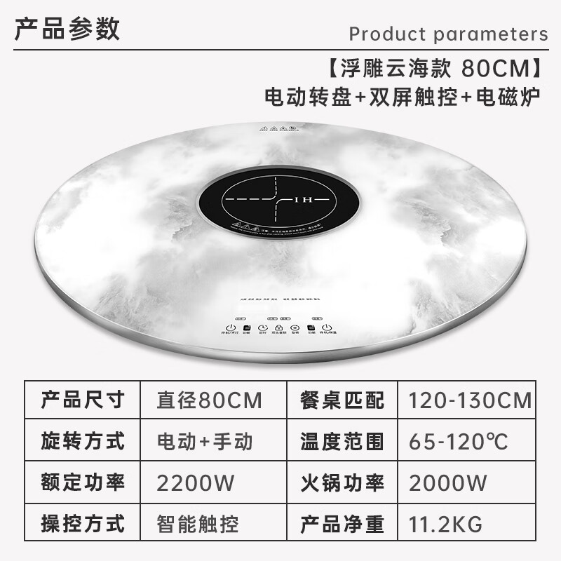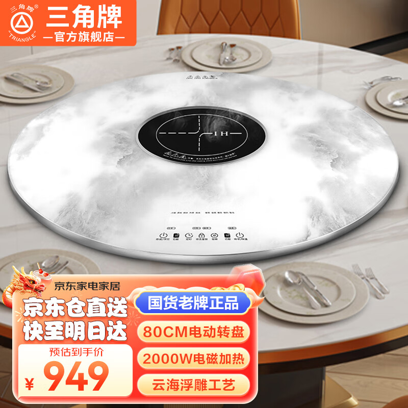 三角牌(Triangle) 暖菜板热菜板加热板饭菜保温板电磁炉多功能带火锅暖菜转盘自动旋转饭菜餐桌 电动转盘+电磁炉 【浮雕款80CM】价格:1069.00元!