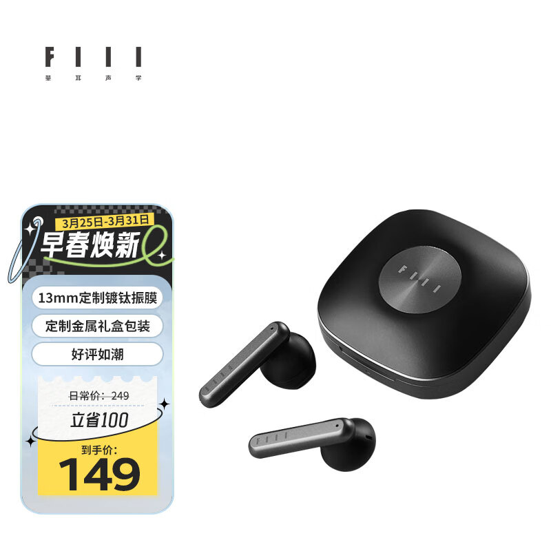 FIIL Key真无线蓝牙耳机苹果华为小米vivo手机电脑笔记本耳机 蓝牙5.3 曜石黑价格:149.00元!