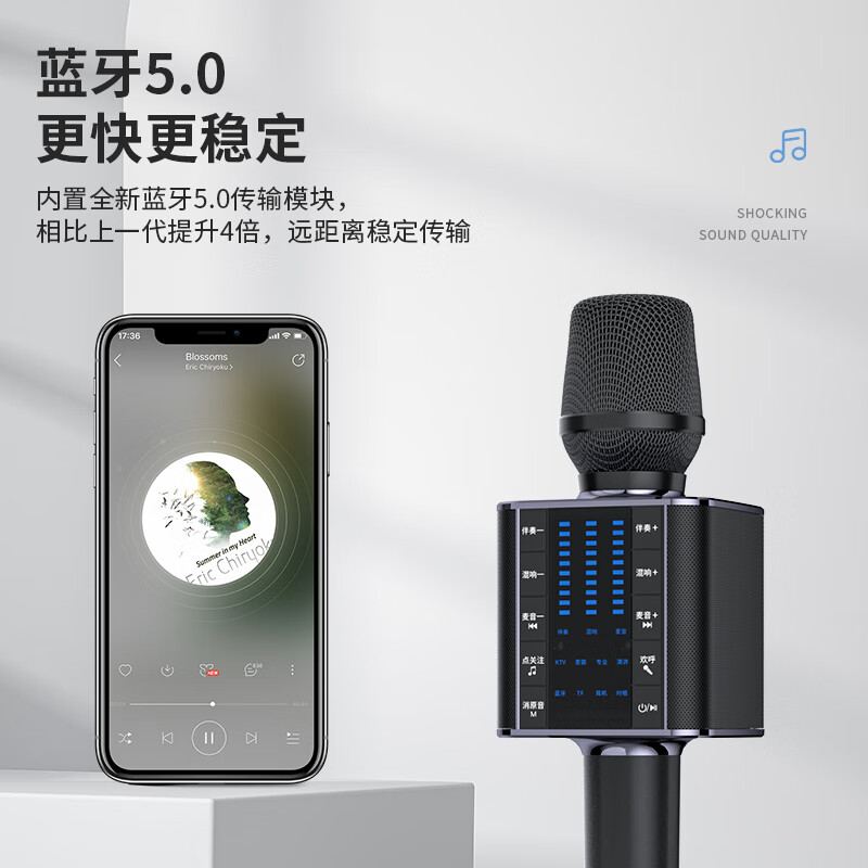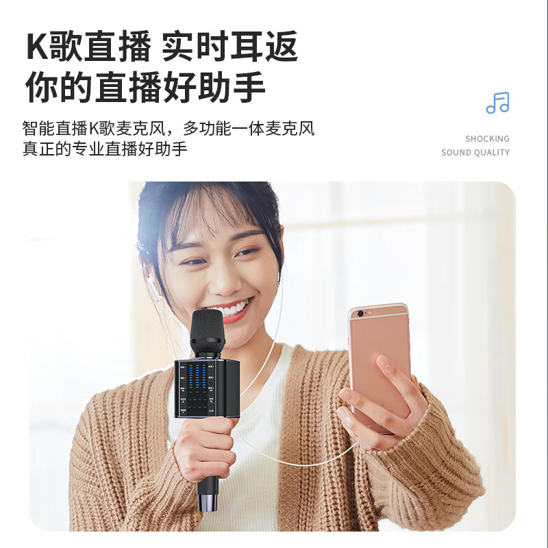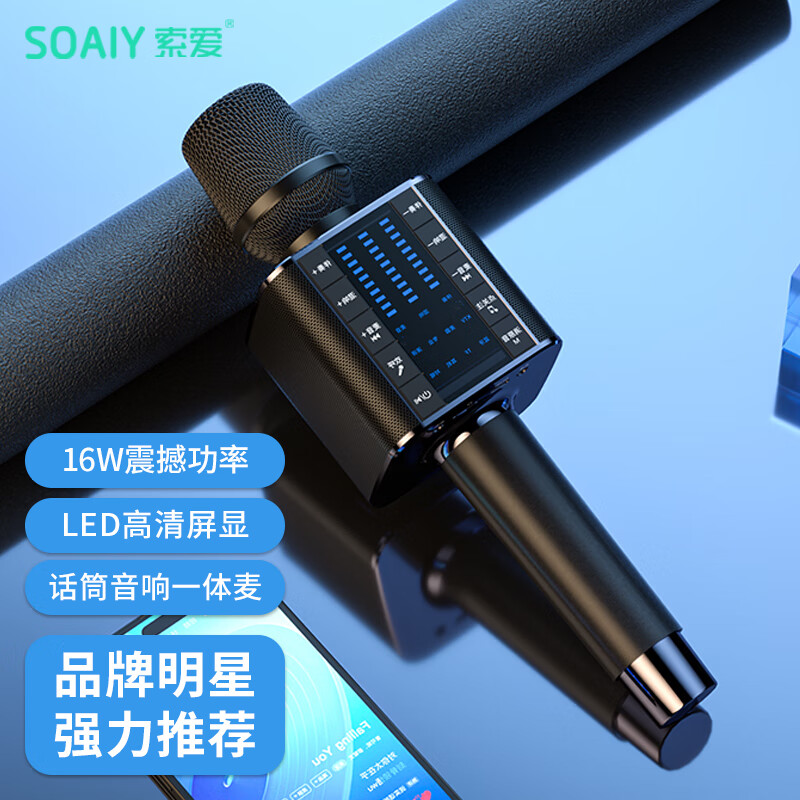 索爱(soaiy)MC31麦克风话筒音响一体无线蓝牙直播自带声卡唱歌儿童家庭ktvk歌宝【典雅黑】价格:439.00元!