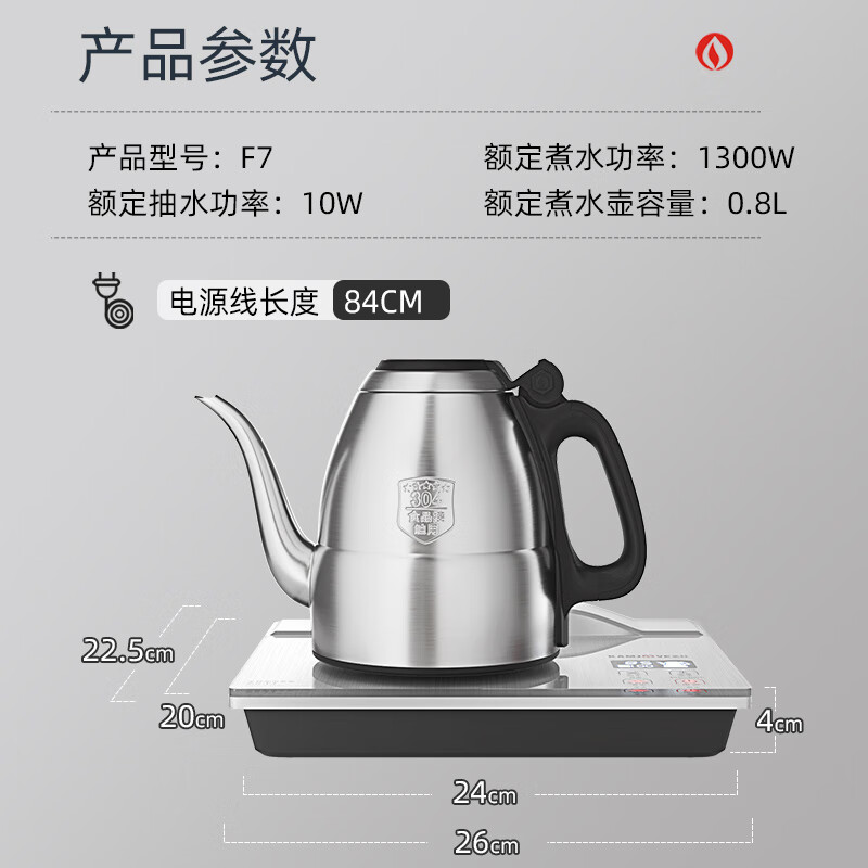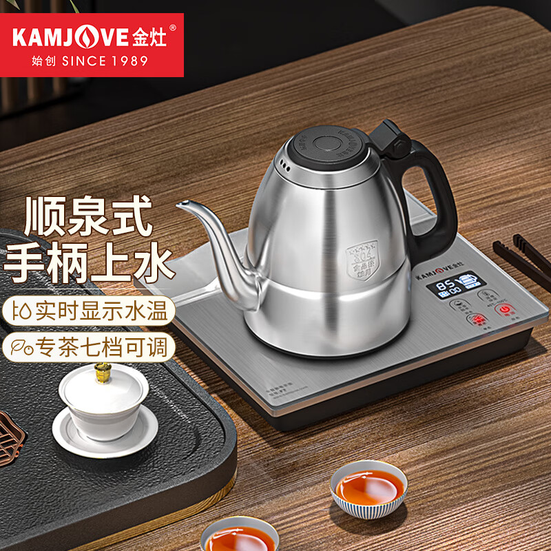 金灶(KAMJOVE)全自动上水电热水壶 智能手柄上水烧水壶 保温泡茶茶具 恒温电茶炉 F7银色版价格:302.00元!