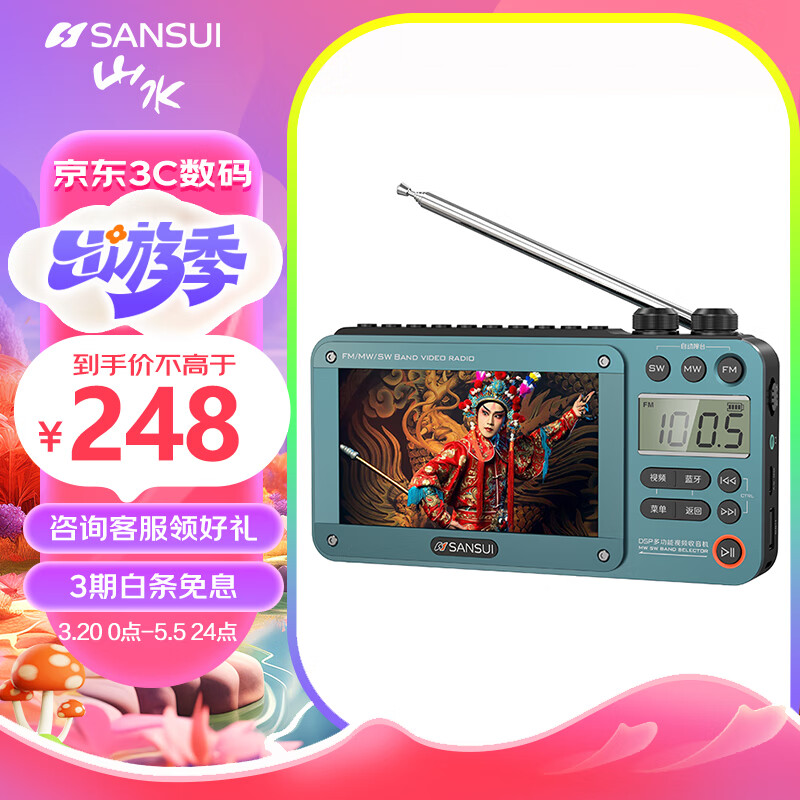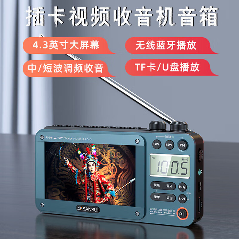 山水(SANSUI)老人收音机便携式看戏机老年人唱戏机视频播放器可视评书内存戏曲歌曲带充电可看电视 M33【蓝色】价格:248.00元!