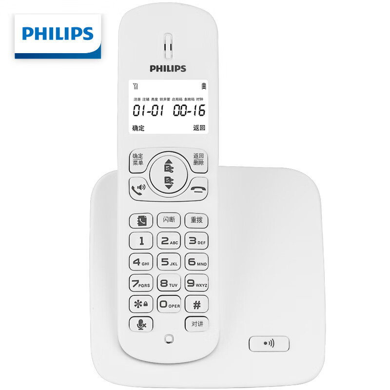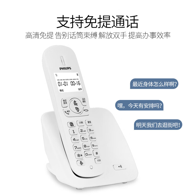 飞利浦(PHILIPS)无绳电话机 无线座机 子母机 办公家用 屏幕白色背光 持久待机 DCTG186白色价格:179.00元!