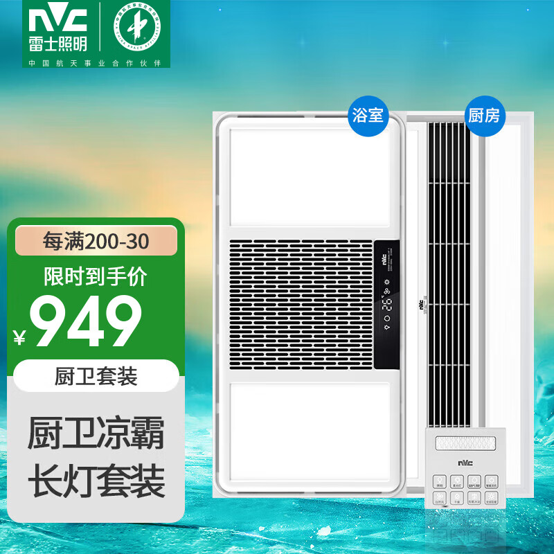 雷士(NVC)双灯大区域照明智能风暖浴霸排气扇照明一体浴室暖风机厨卫套餐A价格:1099.00元!