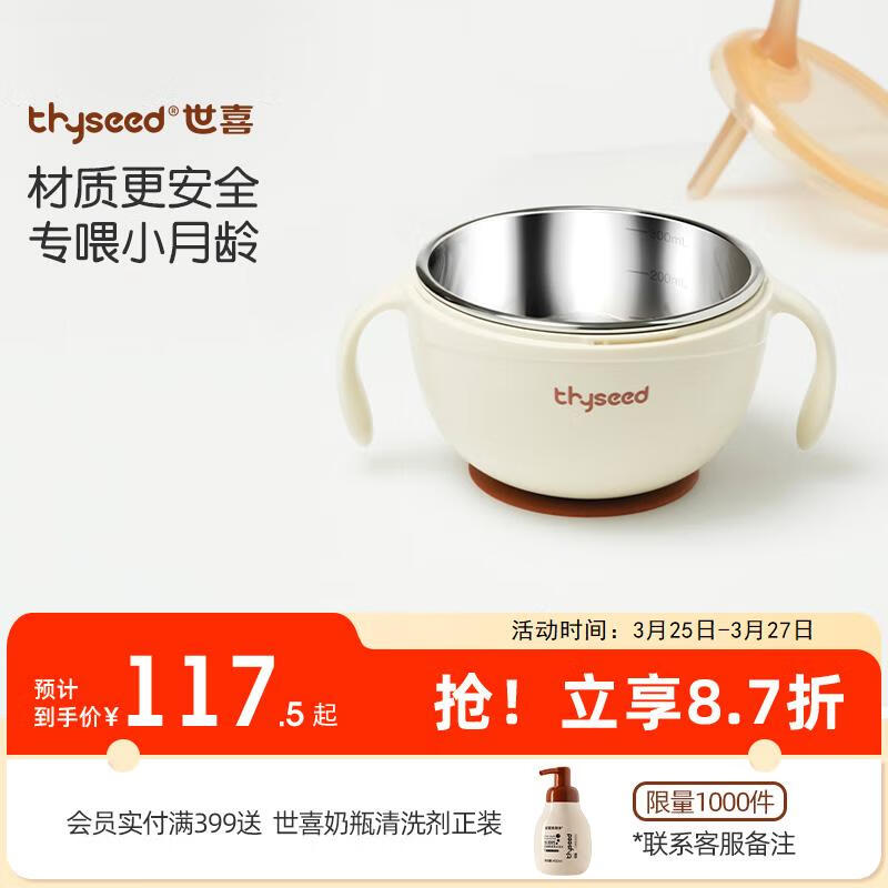 世喜婴儿辅食碗蒸蛋宝宝喝汤吸管碗新生儿0-6个月不锈钢吸盘碗食品级价格:135.00元!