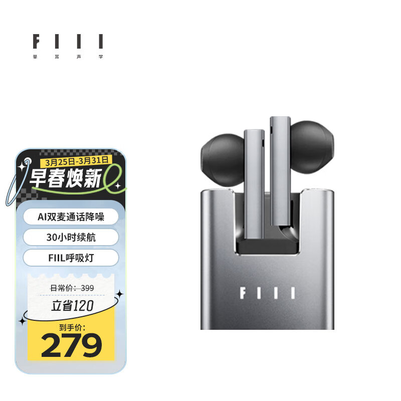 FIIL CC nano真无线蓝牙音乐耳机通话降噪苹果华为小米手机电脑笔记本耳机 金属质感价格:279.00元!