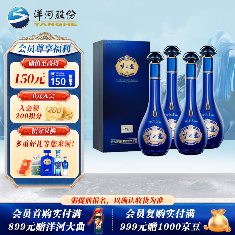 洋河 梦之蓝M6+ 52度 550ml*4瓶 整箱装 绵柔浓香型价格:3708.00元!