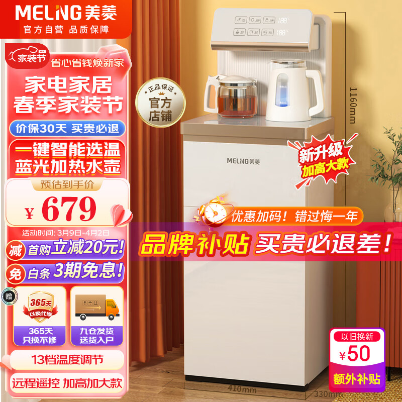 美菱(MeiLing)茶吧机家用饮水机智能多功能遥控茶吧立式桶装水下置式高端大款【冷热型】白金系列MY-C561B价格:699.00元!