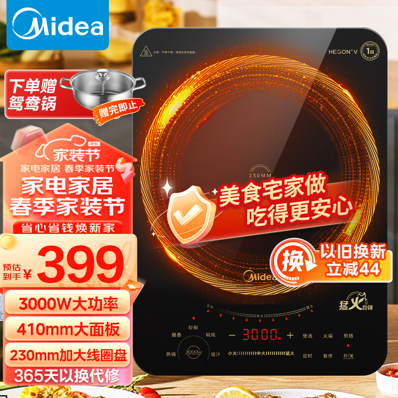 美的(Midea)电磁炉 商用/家用爆炒3000W大功率 电磁灶 匀火加热 智能断电 MC-CL35W7-001价格:399.00元!