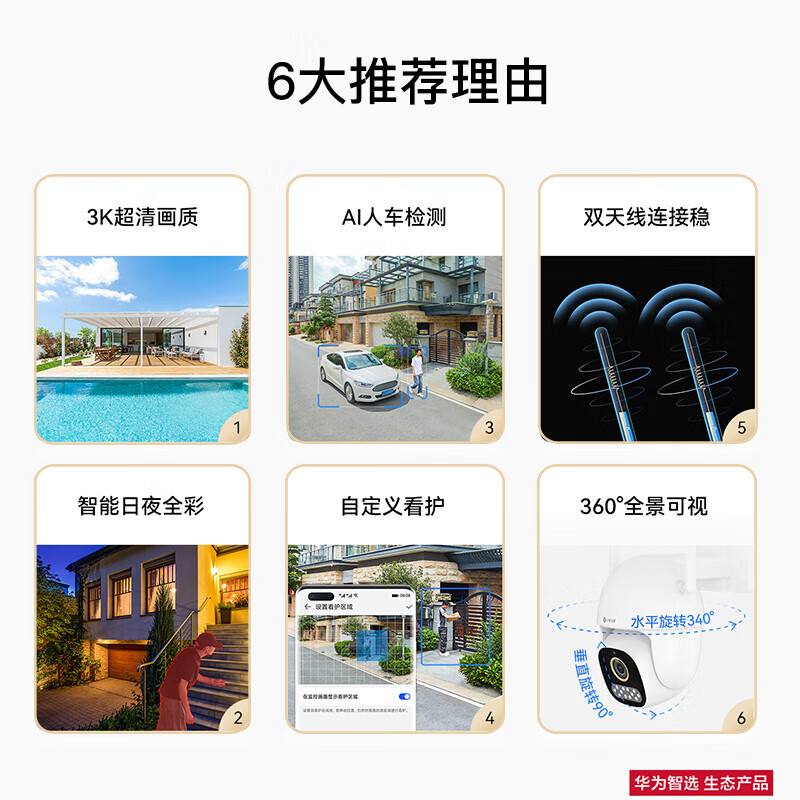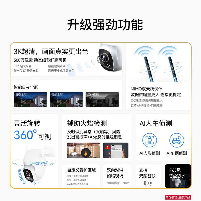 华为智选 小豚当家3K室外无线摄像头家用500万 监控器360度无死角带夜视全景户外防水高清 火焰检测黄金眼价格:429.00元!