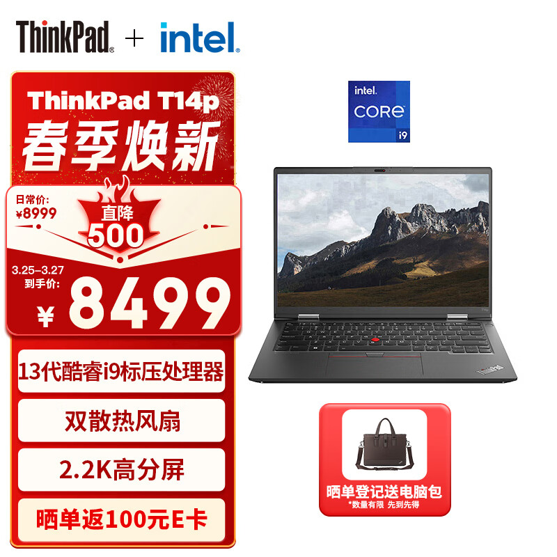 ThinkPad T14p 联想14英寸高性能标压工程师本笔记本电脑 13代酷睿i9-13900H 16G 512G 2.2K 商务办公本价格:8499.00元!