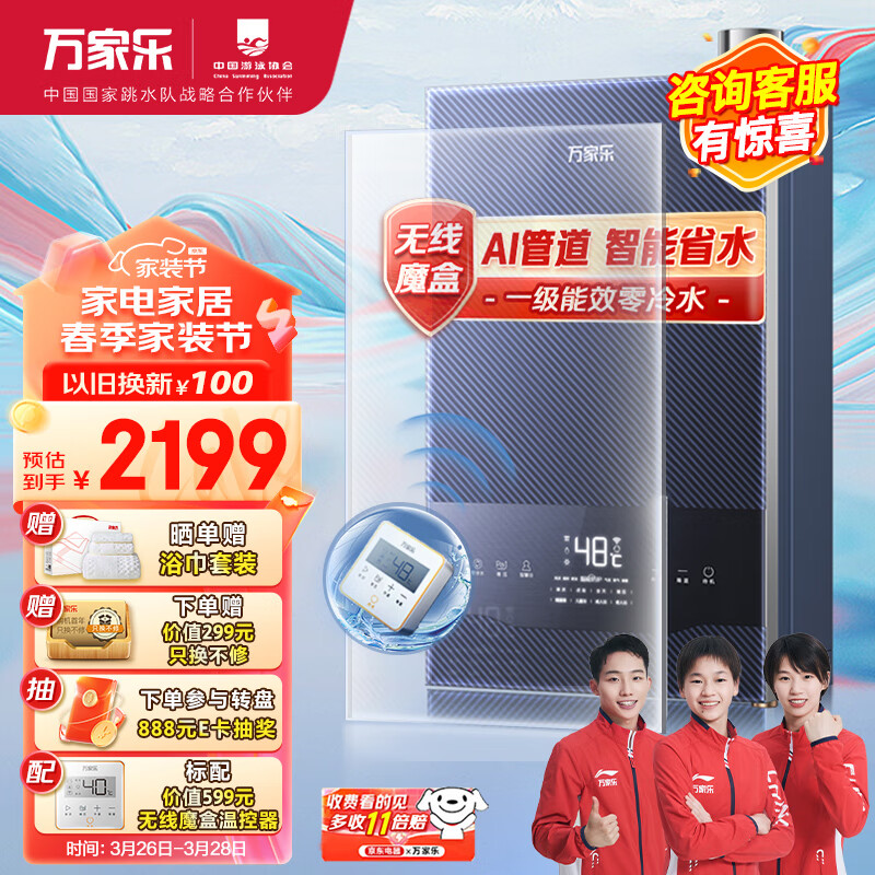 万家乐 16升冷凝式增压零冷水燃气热水器 1级能效净化水质 双屏分控wifi智控JSLQ27-16RL7价格:2199.00元!