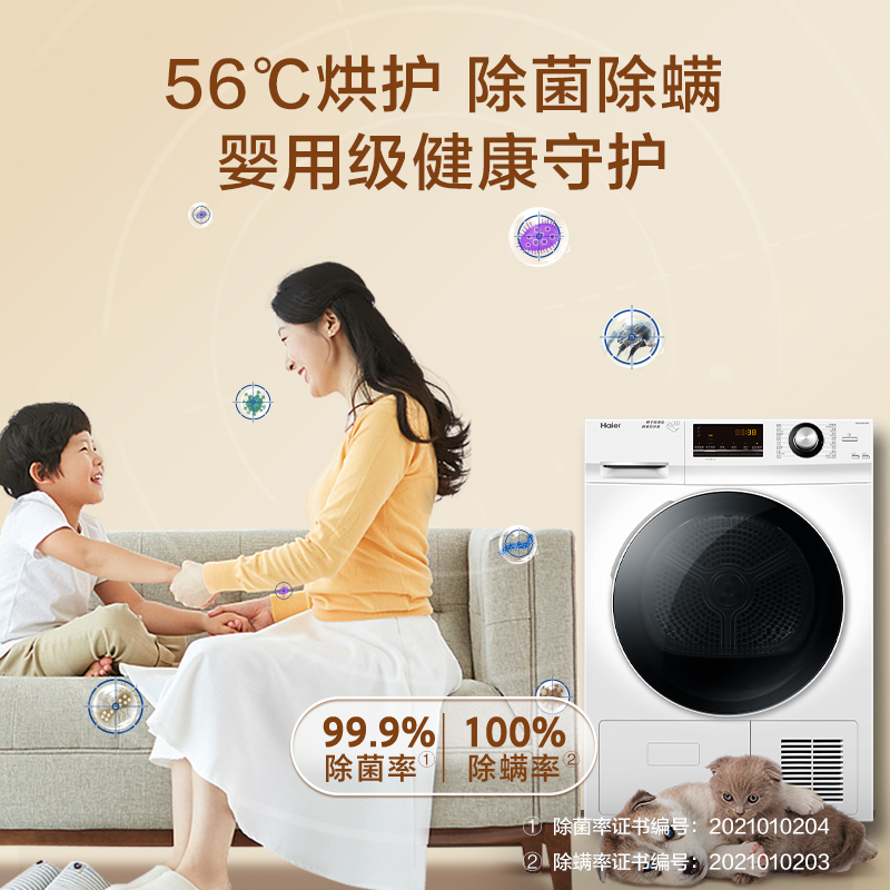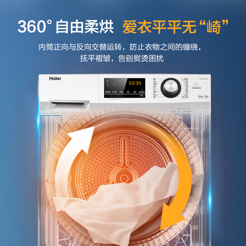 海尔(Haier)烘干机 10公斤防缠绕除毛屑热泵类家用大容量滚筒干衣机多模式烘衣服烘衣机 EHG100129W价格:3299.00元!