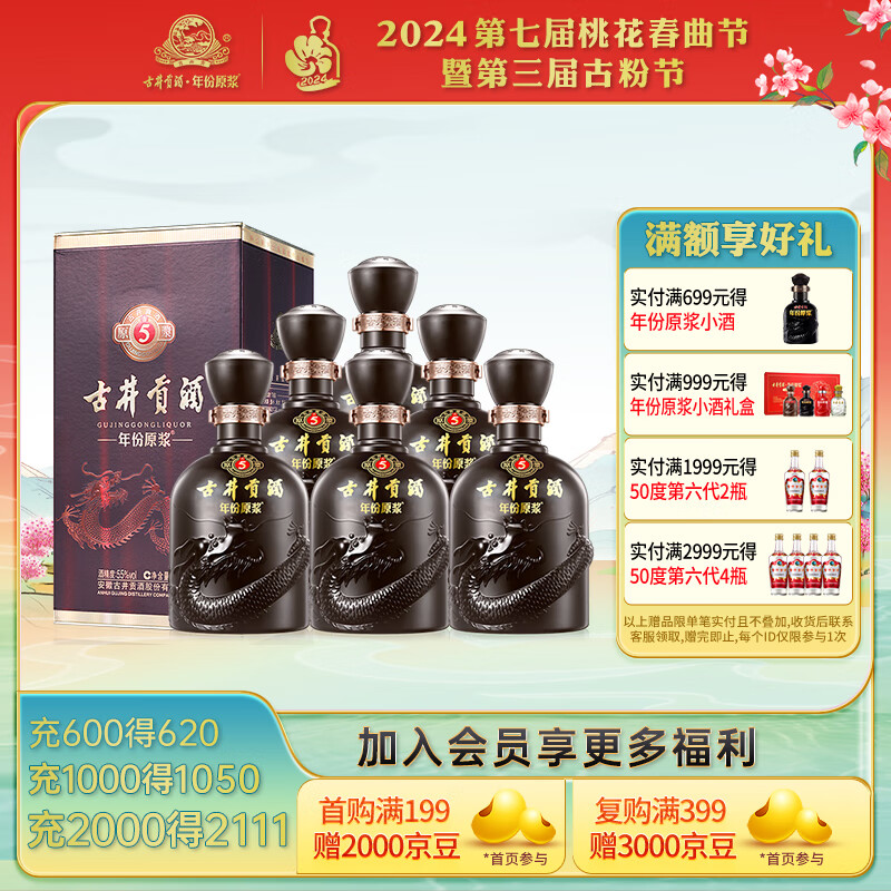 古井贡酒年份原浆 古5 浓香型白酒 55度500ml*6瓶 整箱装价格:1058.82元!