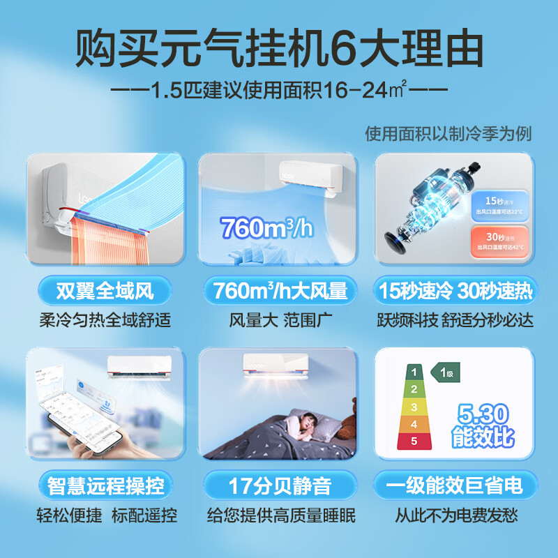 Leader海尔智家出品 元气1.5匹空调挂机新一级变频 自清洁壁挂式 KFR-35GW/05LKG81TU1 以旧换新价格:1999.00元!