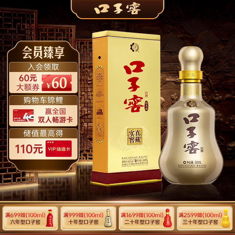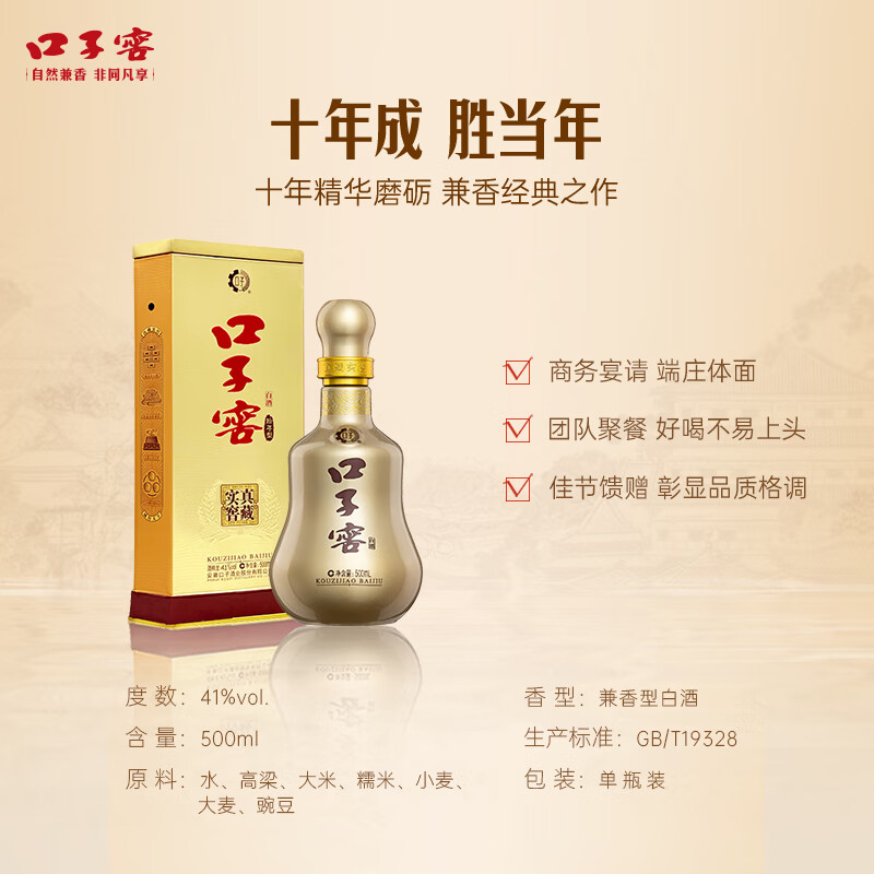 口子窖十年型兼香型白酒41度500ml*1瓶 纯粮口子酒 送礼宴请价格:362.00元!