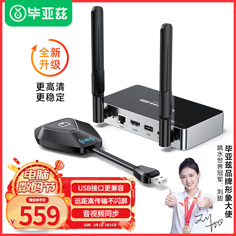 毕亚兹 企业级无线投屏器 USB同屏器电脑手机笔记本电视HDMI高清传输器传电视投影仪显示器会议套装 R58价格:559.00元!