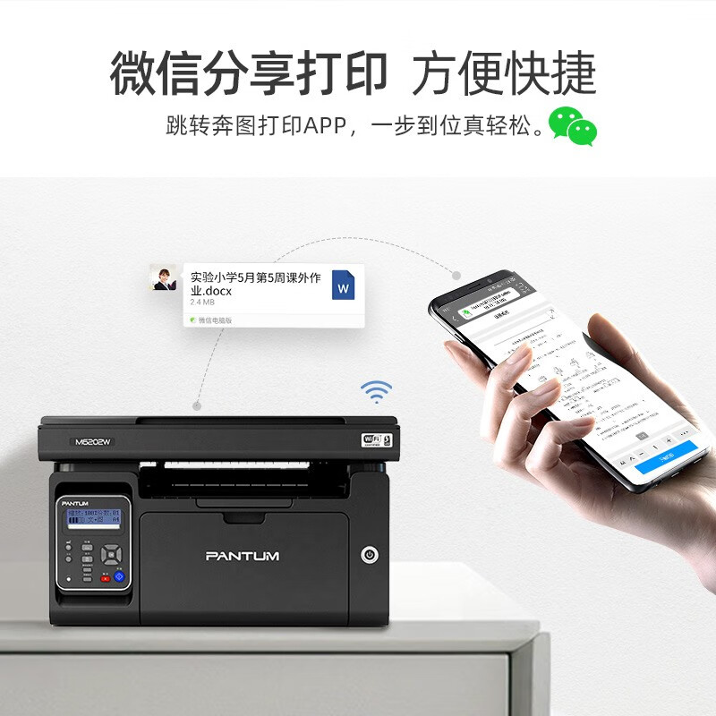 奔图(PANTUM)M6202W黑白激光打印机 家用复印扫描一体机 手机无线学习打印 静谧黑价格:819.00元!