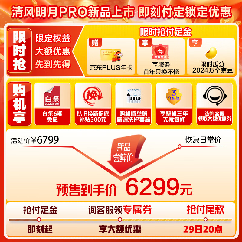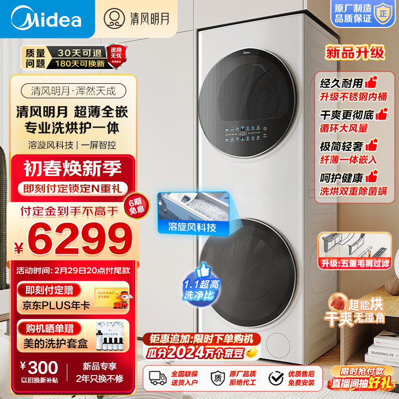 美的(Midea) 洗烘套装 10公斤滚筒洗衣机全自动+热泵烘干机【清风明月】超薄全嵌 洗烘护一体机 MGH20VE5PRO价格:6299.00元!