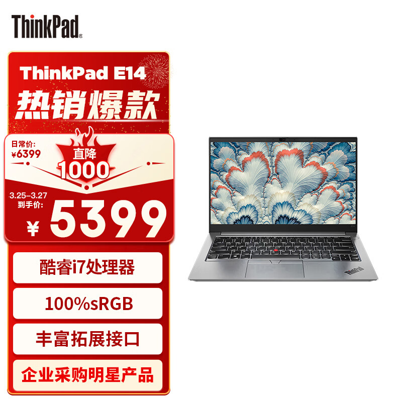 ThinkPad E14 英特尔酷睿i7 联想14英寸轻薄便携笔记本电脑(i7 16G 512G 100%sRGB 银)商务办公本价格:5399.00元!