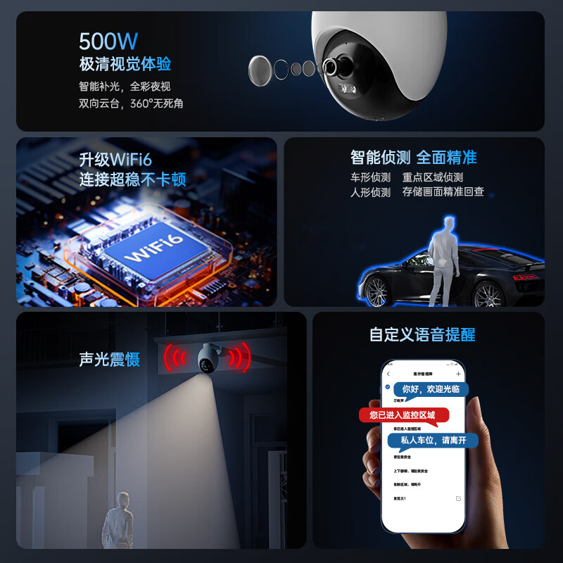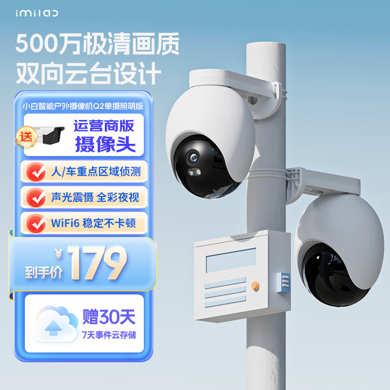 小白 Q2摄像头室外全景球机 500W像素监控wifi6网络 防水防尘智能补光手机远程AI人车侦测全彩夜视价格:179.00元!