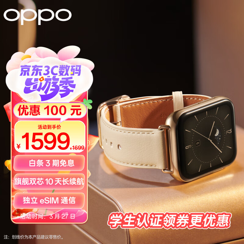 OPPO Watch 3 羽金 全智能手表 运动健康手表男女eSIM电话手表 血氧心率监测 适用iOS安卓鸿蒙手机价格:1599.00元!