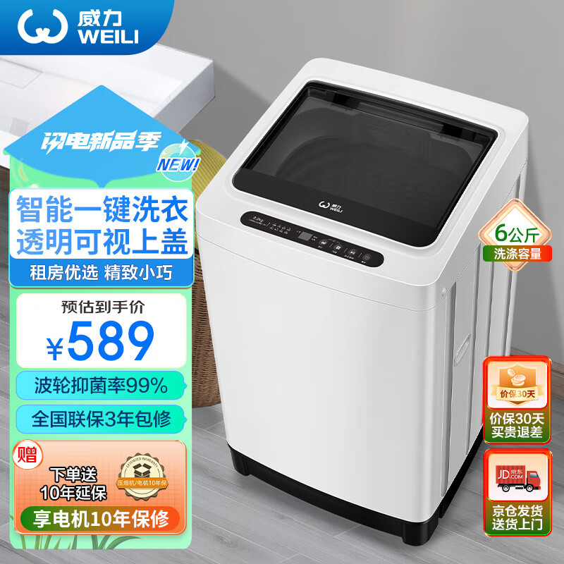 威力(WEILI)6公斤 波轮洗衣机全自动 13分钟快洗 洗衣机小型 租房宿舍神器 以旧换新(雅白色)XQB60-6026B价格:589.00元!