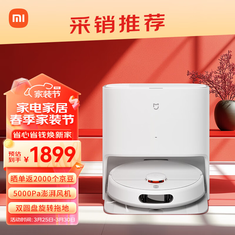 米家小米免洗扫地机器人2 扫洗拖一体机擦地机拖地机器人洗拖一体 全自动清洗拖布 洗地机价格:1899.00元!