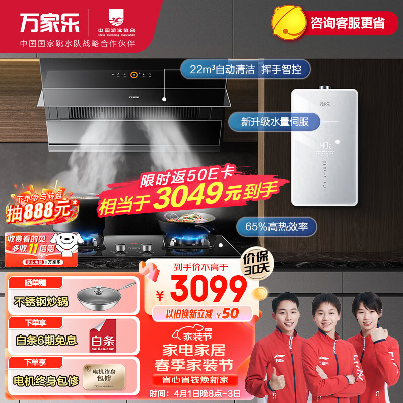 万家乐烟灶热水器三件套 22立方挥手烟灶16L水伺服天燃气热水器厨房套装AL061+KV061B+16T8天然气价格:3299.00元!