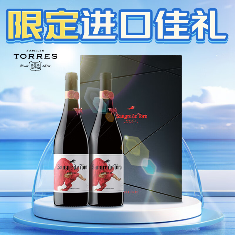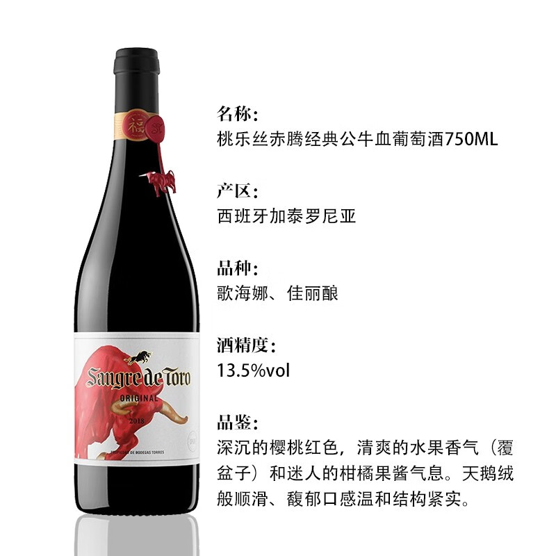 桃乐丝(Torres)赤腾公牛血干红葡萄酒750ml*2礼盒装 进口热红酒限定探亲节日送礼价格:269.00元!