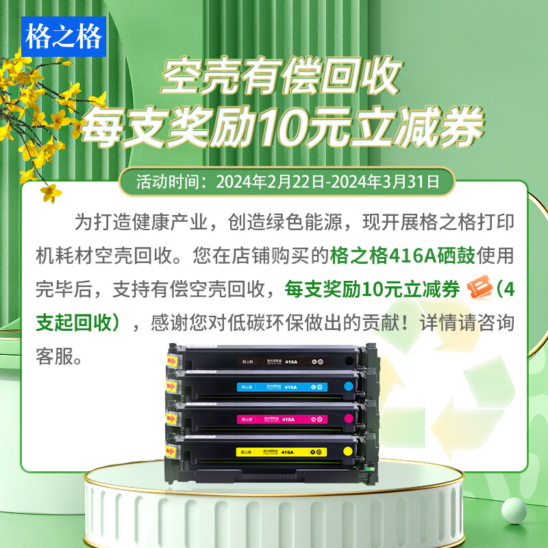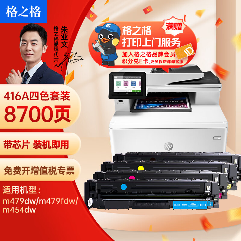 格之格416a硒鼓适用惠普m479dw硒鼓 m454dw m479fnw m454dn m454nw 惠普m480f硒鼓 四色套装带芯片抗升级价格:999.00元!