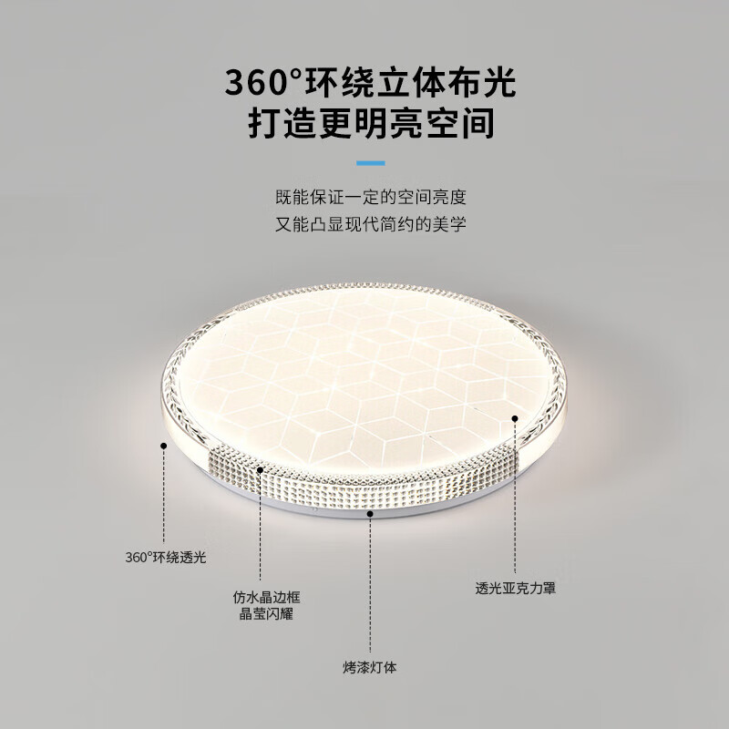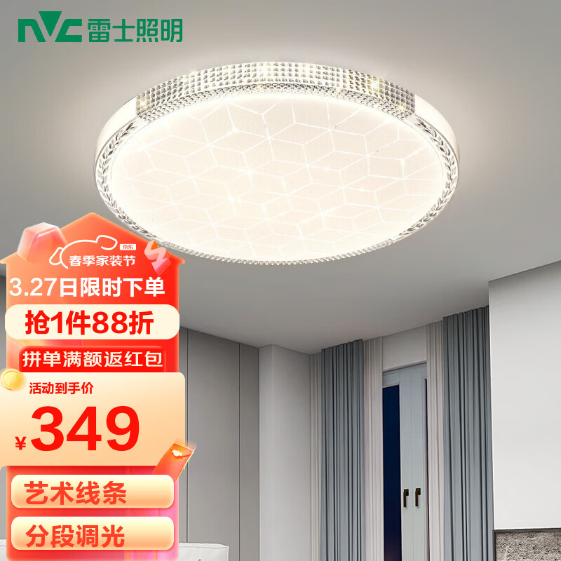 雷士(NVC)LED吸顶灯现代简约客厅卧室书房餐厅灯具分段调光轻奢灯饰菱格价格:349.00元!