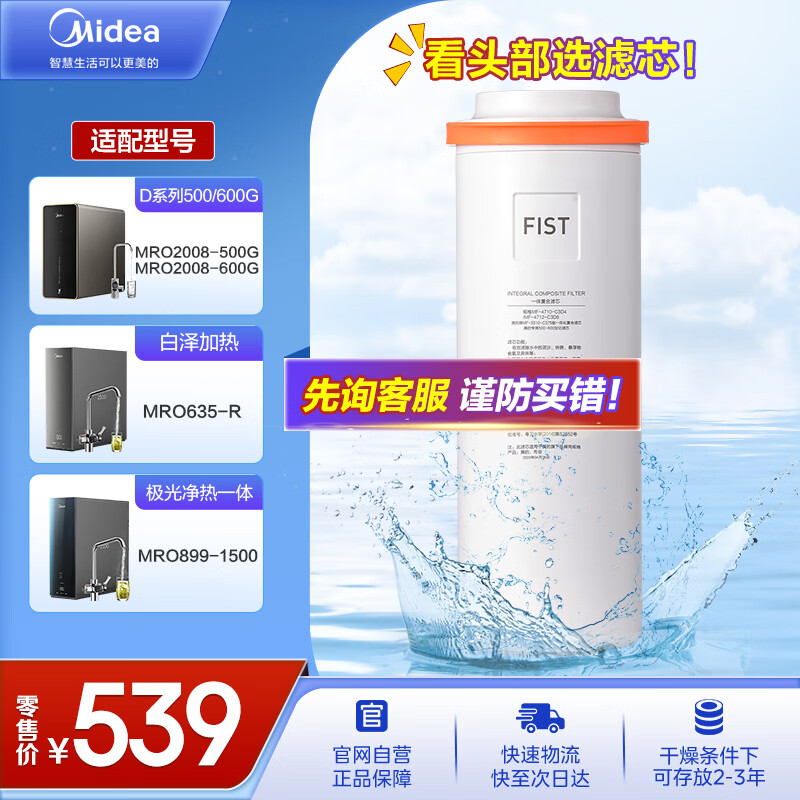 美的(Midea)净水器滤芯-适配阿尔法 布谷 MRO1890、MRO2008、MRO2019 500G/600G fist一体滤芯 净水器滤芯价格:539.00元!