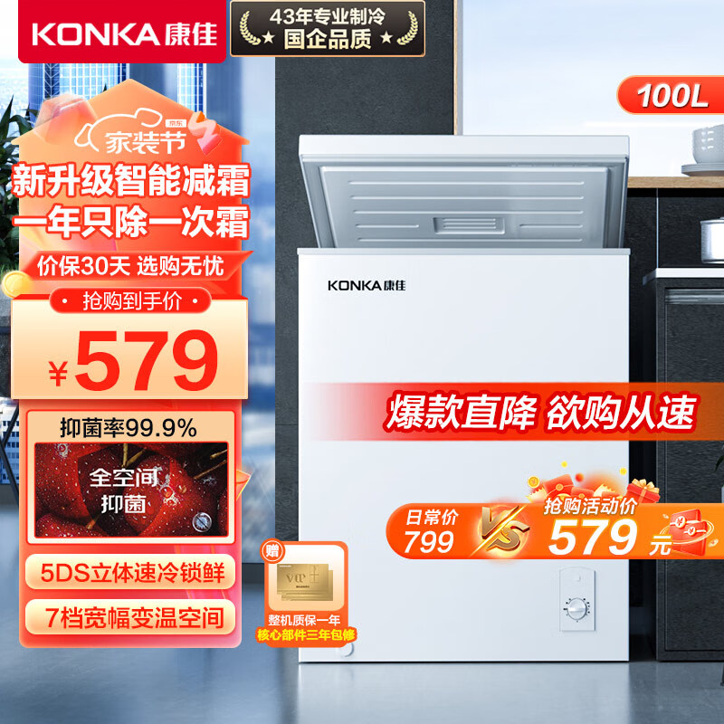 康佳(KONKA)100升冰柜家用冷藏冷冻转换冷柜 家用囤货冰柜小型 一级能效 母婴母乳小冰箱BD/BC-100DTH价格:579.00元!