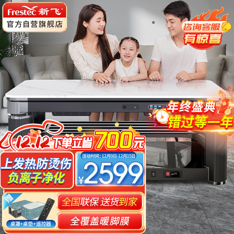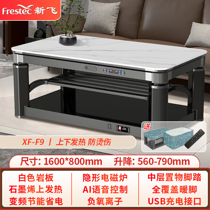 新飞电暖桌1.6米石墨烯发热体取暖茶几升降语音控制取暖桌家用长方形电暖炉变频节能电烤火桌餐桌XF-F9价格:4248.00元!