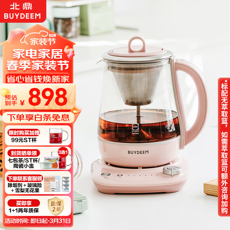 北鼎(Buydeem)智能养生壶烧水壶 家用电热水壶多功能煮茶器恒温热水壶智能APP互联 Smart K单壶猪猪粉价格:898.00元!