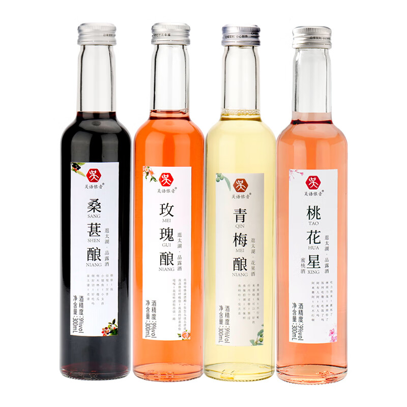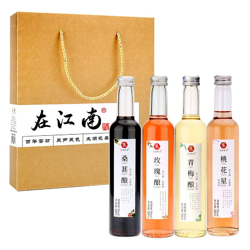 在江南花果酒礼盒9度4味套装桑葚玫瑰青梅桃花女士甜酒旅游馈赠苏州特产价格:118.00元!
