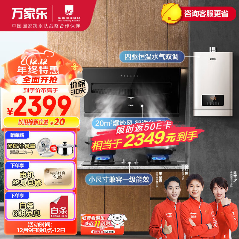 万家乐 抽油烟机 烟灶热三件套装 20m3/min挥手油烟机燃气灶热水器厨卫三件套DAJ3+KA032B+16LD5天然气价格:2499.00元!