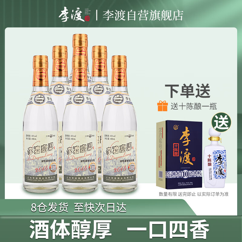 李渡 2015黄金版 兼香型白酒45度490ml*6瓶整箱装高粱酒【收藏送礼】价格:1308.00元!