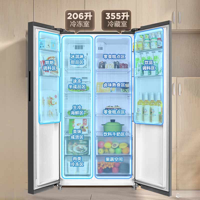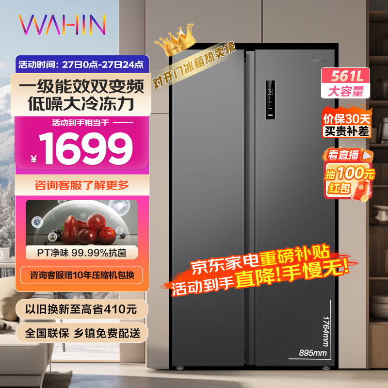 华凌589对开门双开门家用节能电冰箱 双变频一级能效风冷无霜PT净味超薄超大容量冰箱HR-589WKP价格:1699.00元!