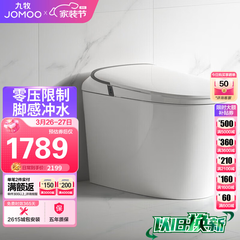 九牧(JOMOO)J11456-2-1/41K-1无水压轻智能马桶座圈加热离座冲水小冲一级水效价格:2279.00元!