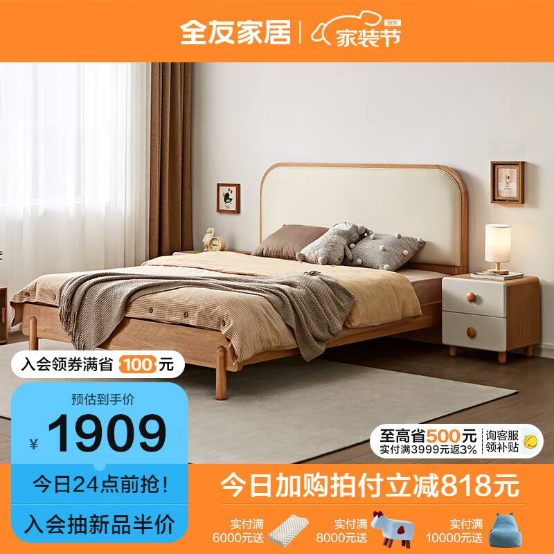 全友家居?床青少年生态科技皮床单人床国民家居实木框架1.5米床121376价格:2727.14元!