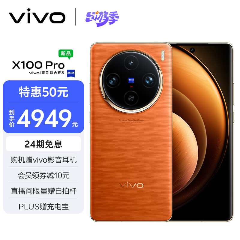 vivo X100 Pro 12GB+256GB 落日橙 蔡司APO超级长焦 蓝晶×天玑9300 5400mAh蓝海电池 自研芯片V3 手机价格:4999.00元!