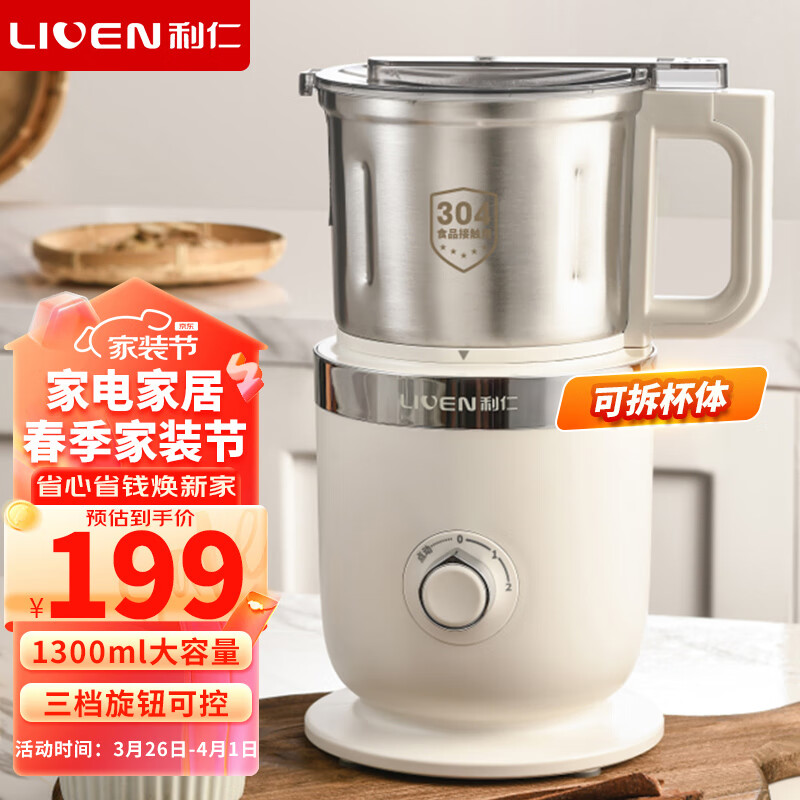 利仁(Liven)研磨机家用磨粉机打粉机中药粉碎机1.3升分体可拆洗料理机干粉机不锈钢打粉超细研磨机 MFJ-J5185价格:199.00元!