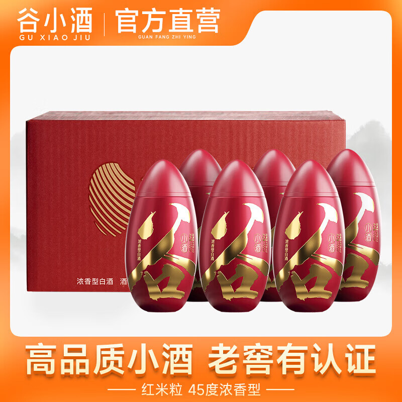 谷小酒 红米粒 浓香型白酒 45度小瓶酒 100ml*6瓶 整箱装价格:65.00元!