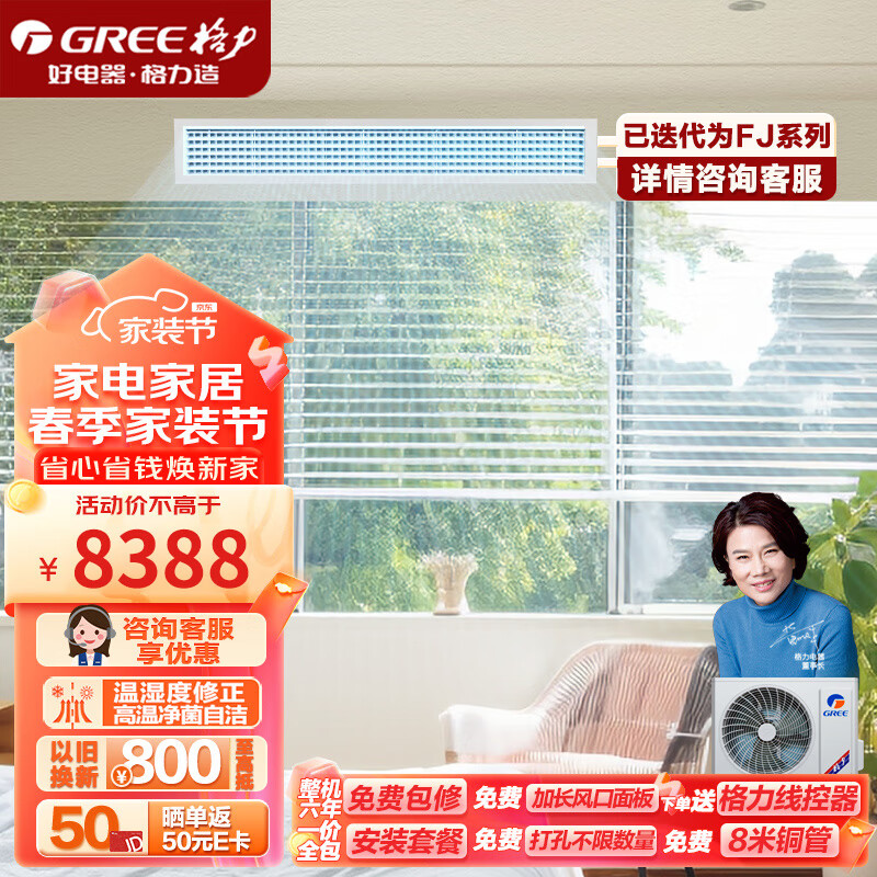 格力(GREE)中央空调 风管机一拖一 2匹家用嵌入式空调 1级能效冷暖FGR5Pd/C3Nh-N1 京仓派送(一价全包)价格:7559.00元!