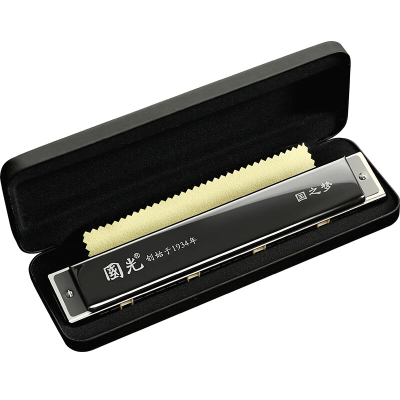 国光 24孔复音口琴国之梦专业演奏比赛级口琴C调(雅典黑/眼镜盒装)价格:129.00元!
